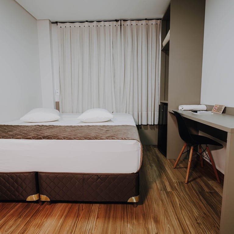 Diária reduzida, sem perder o conforto. Aqui você tem um hotel prático e silencioso, um ótimo café da manhã, localização de fáciç acesso aos principais pontos da cidade e estacionamento privativo.