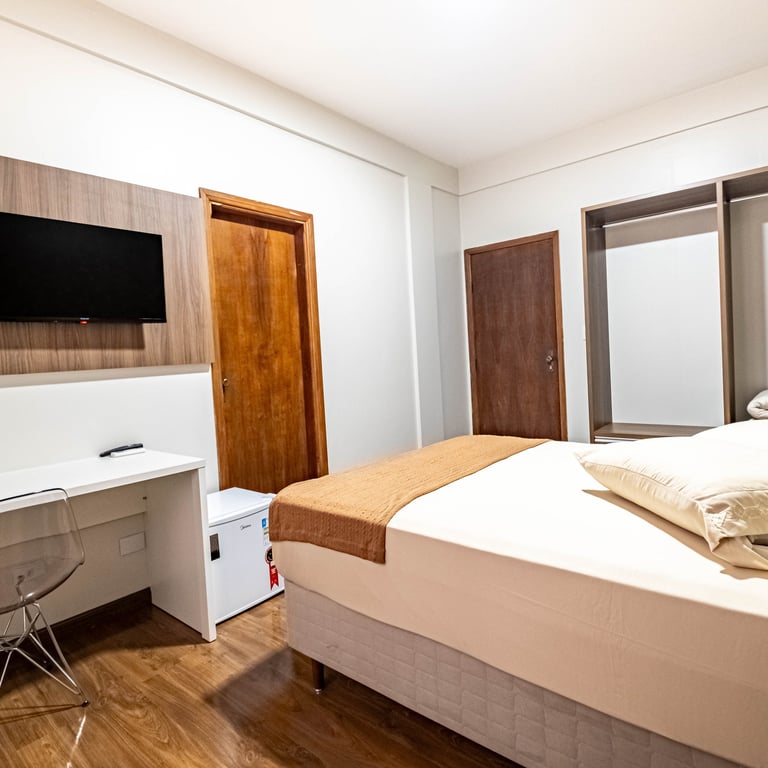 Diária reduzida, sem perder o conforto. Aqui você tem um hotel prático e silencioso, um ótimo café da manhã, localização de fáciç acesso aos principais pontos da cidade e estacionamento privativo.